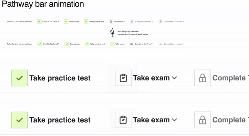 I utilized tools such as Jitter and Lottie to refine and prototype micro-animations on the pathway bar, exploring multiple iterations to identify where moments of delight could be seamlessly integrated into the user experience.