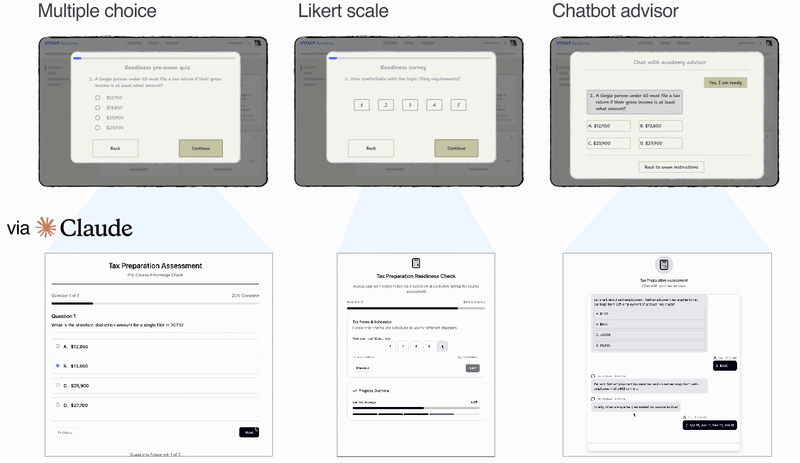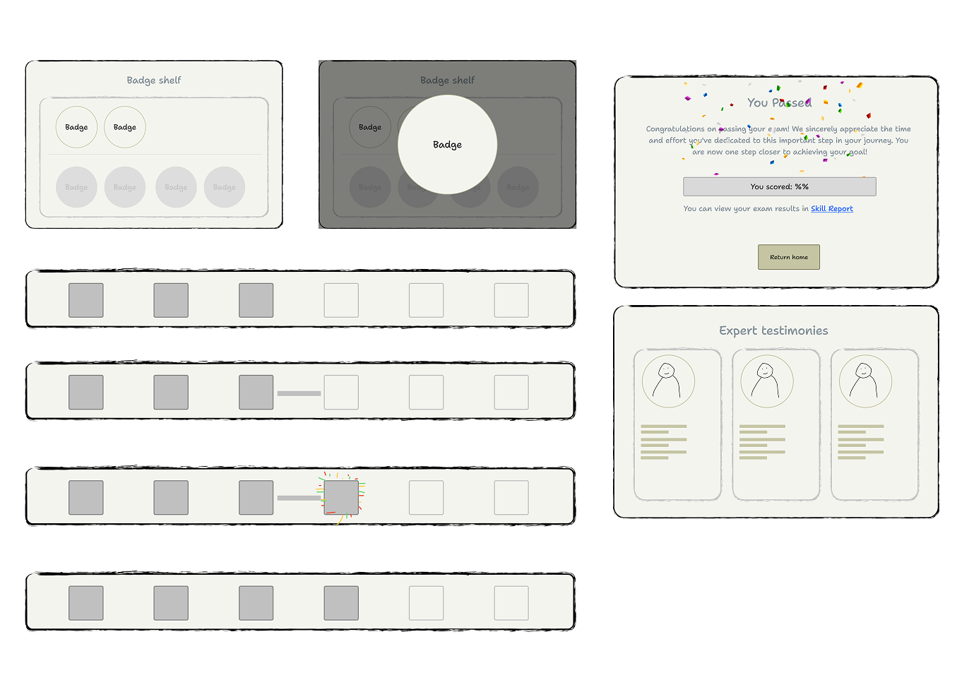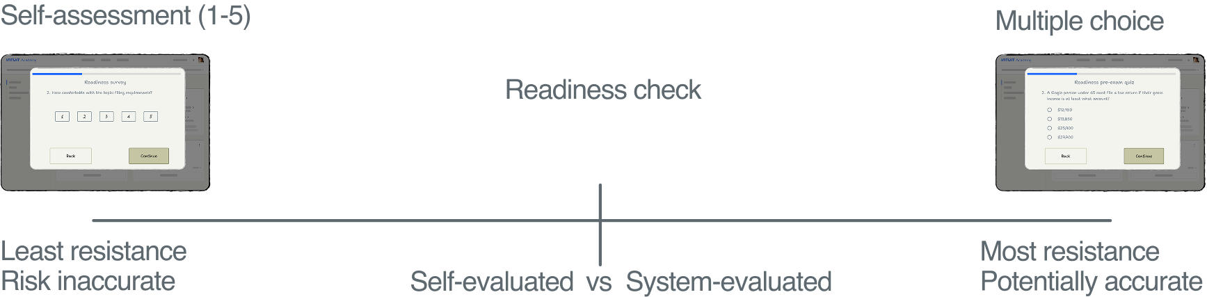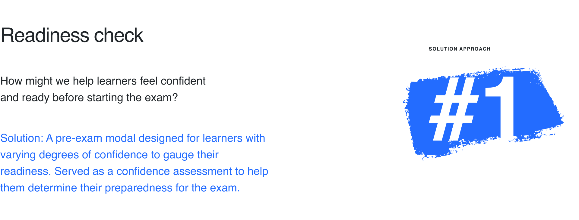 As this is a net-new feature, I began by sketching initial concepts for the pre-exam readiness checker within our experience. I then brought these ideas to life by building interactive prototypes using AI-powered tools such as Claude Code, enabling rapid iteration. These prototypes were subsequently tested with domain experts to gather early feedback and validate assumptions.