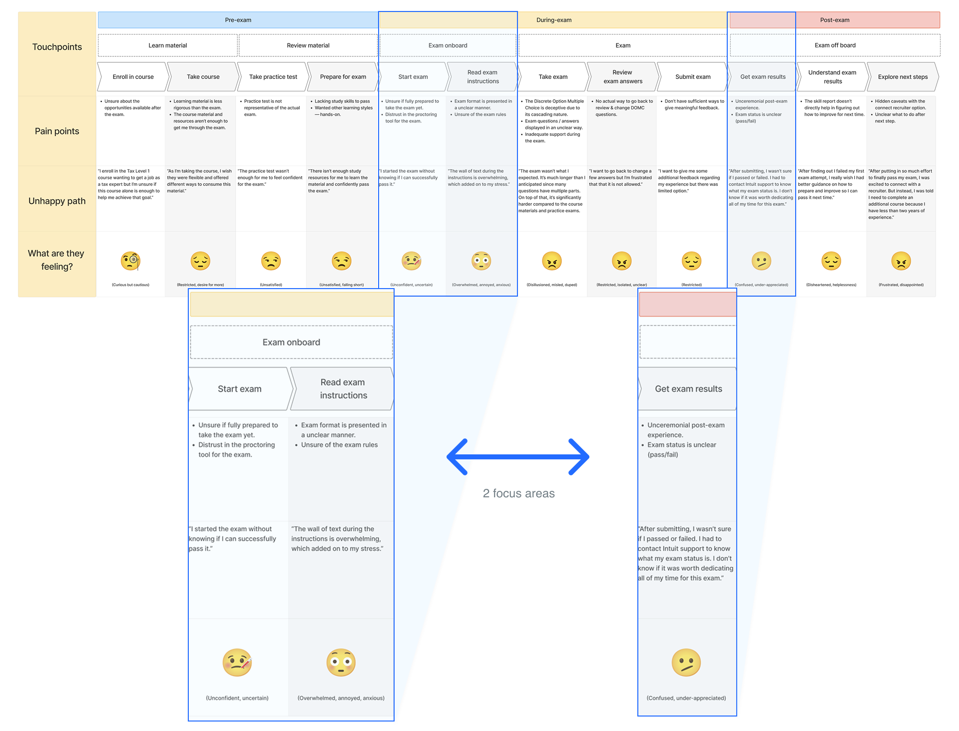 I started the design process with a comprehensive audit that encompasses the current exam experience. The current proctoring platform is provided by a third-party vendor, Docebo. We are actively transitioning away from this solution and developing an in-house platform.