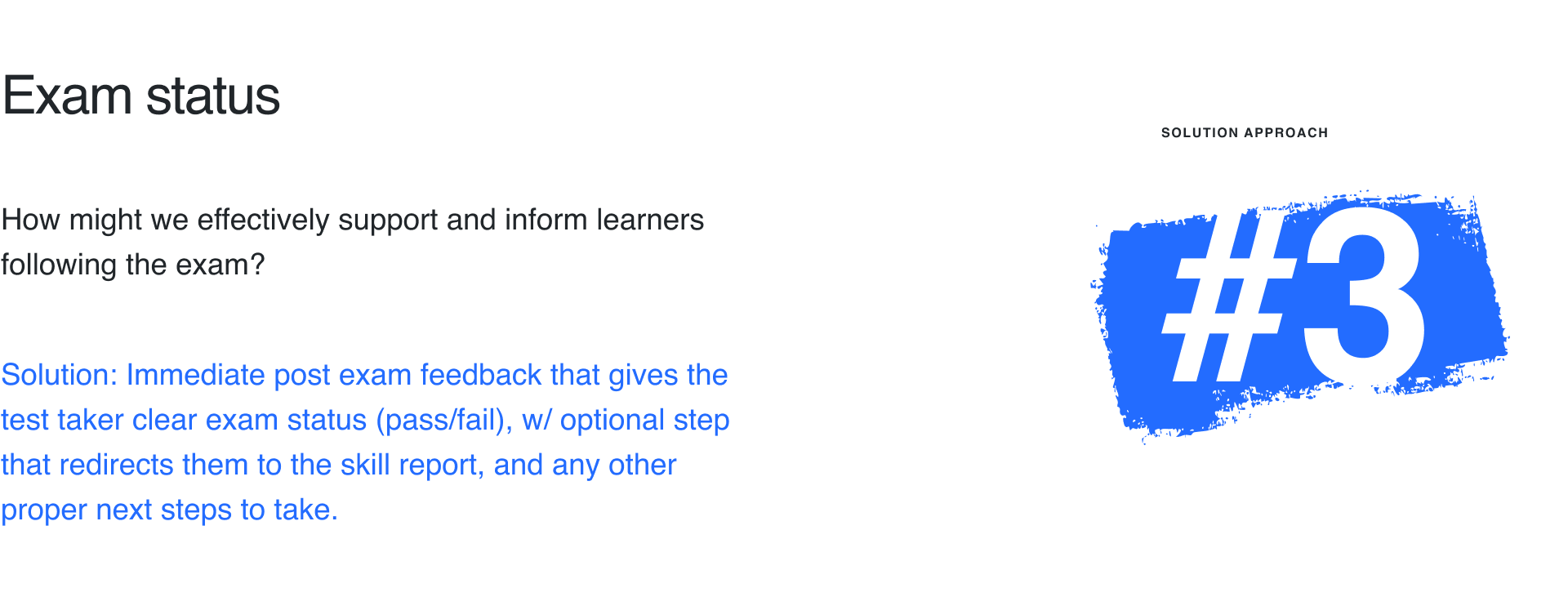 Sketched out what an immediate feedback screen could look like in the exam experience. Provocted and had in-depth discussions regarding just what to exactly surface at this stage.
